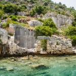Beach hopping along the Turquoise Coast from Antalya to Fethiye was one sun-drenched highlight after another: taking in the breathtaking beauty of Olympos’ white pebble beach, flanked by clear warm sea, towering green mountains and two-thousand-year-old ruins, hiking to the eternal flames of Chimaera, which have burnt naturally for thousands of years, cruising to the sunken ruins of an ancient city at Kekova, climbing to the top of a medieval castle, exploring ancient Lycian tombs scattered on hillsides covered with silvery gnarled olive trees, discovering the birthplace of Santa Claus (yes, really) next to one of Turkey’s most beautiful beaches, swimming in sea the colour of jewellery, driving through tiny villages (just a few kilometres from tourist-packed coastal resorts) where life looks like it’s continued the same way for hundreds of years to stay at rustic cottages perched on the edge of high cliffs plunging down into the sea.
